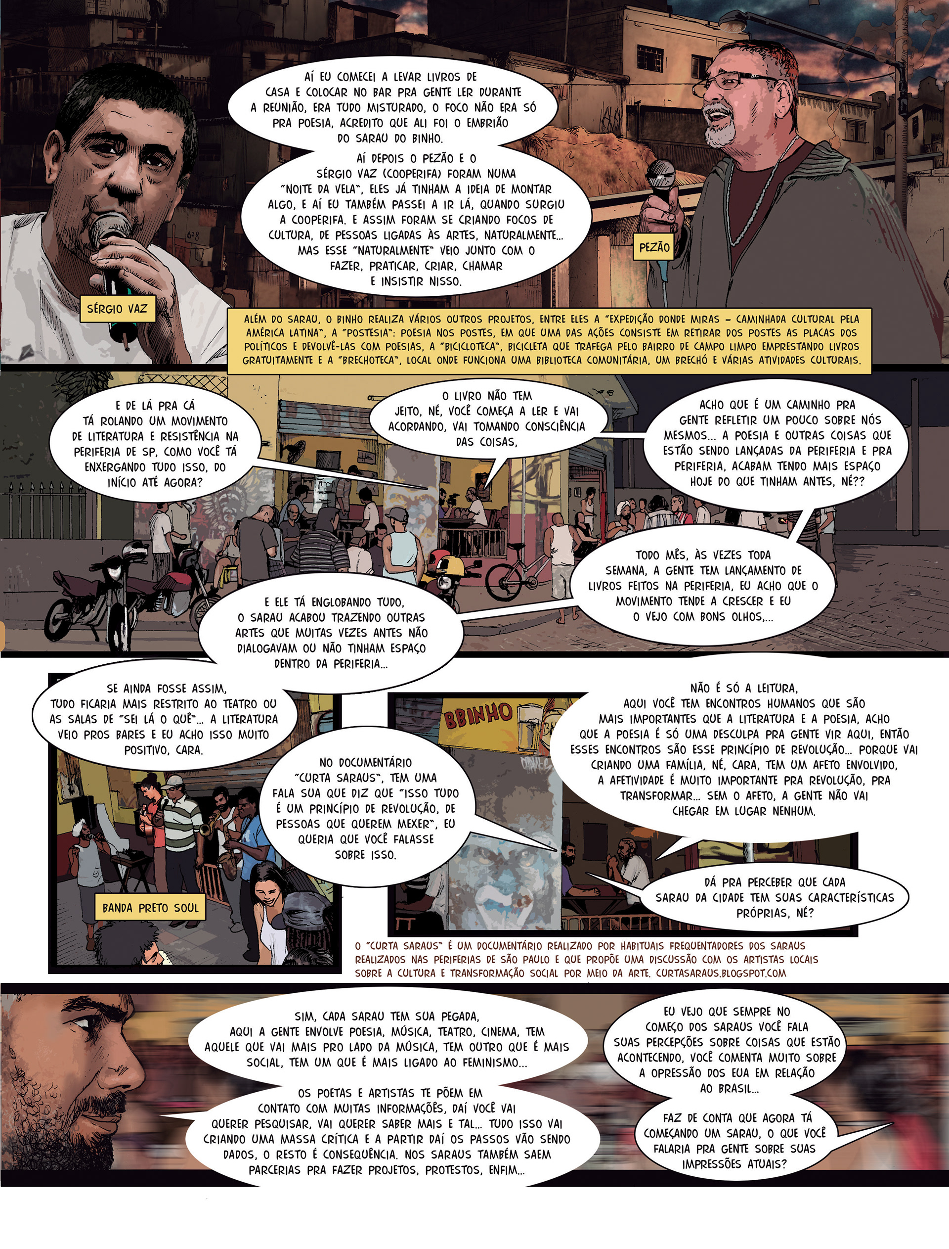 Um ano de publicações mensais de entrevistas em quadrinhos na revista Fórum abordando diversos temas como pixação, questão indigena, drogas, fugitivos da policia, manifestações entre outros
