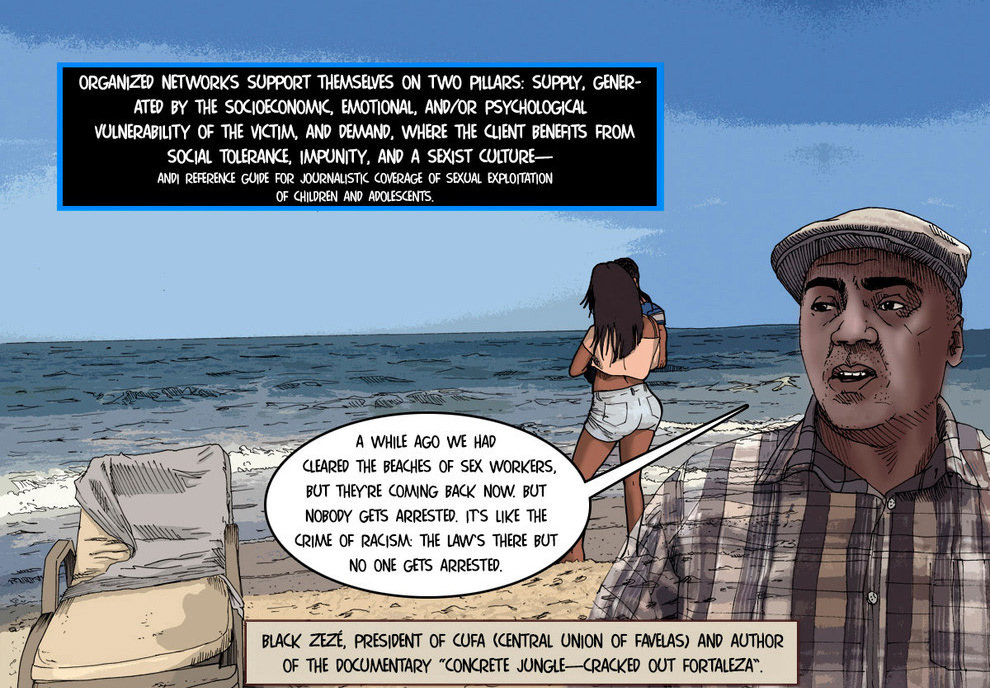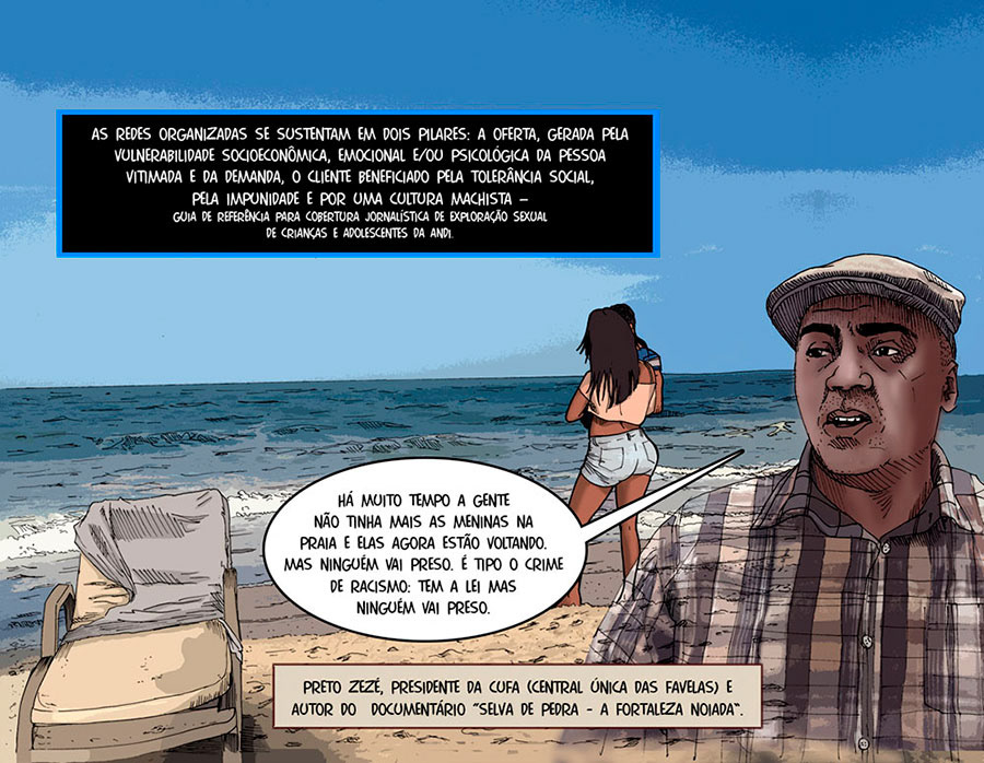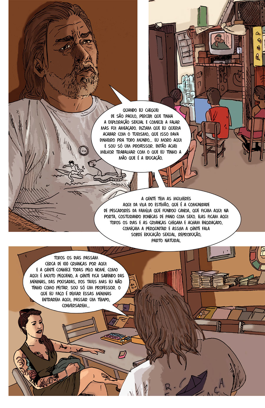Reporting on comics about sexual exploitation of children and adolescents in Fortaleza (winner Tim Lopes Award for Investigative Journalism)