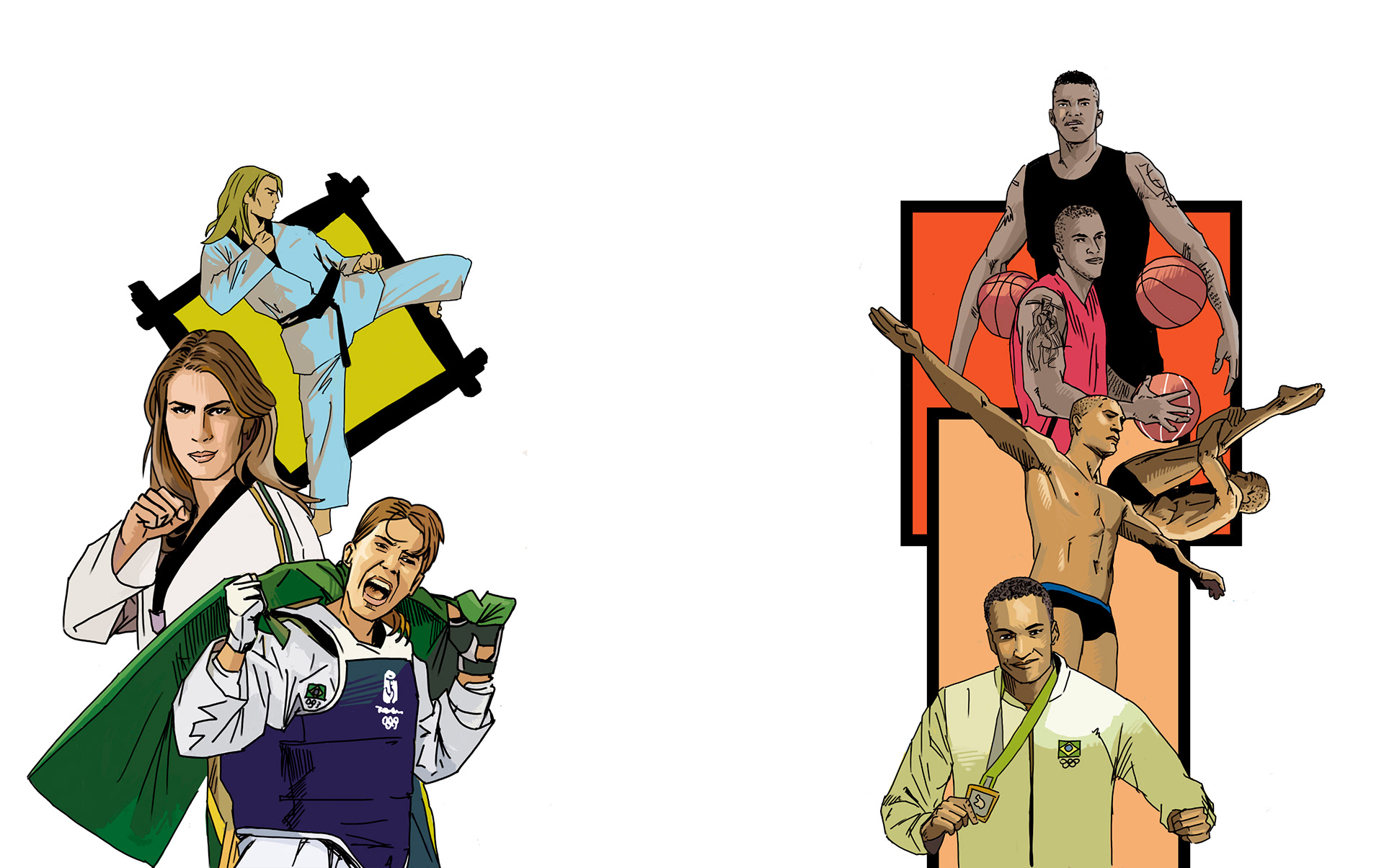 Matéria em quadrinhos e ilustrações para o caderno especial sobre olimpiadas no jornal Estado de S. Paulo.