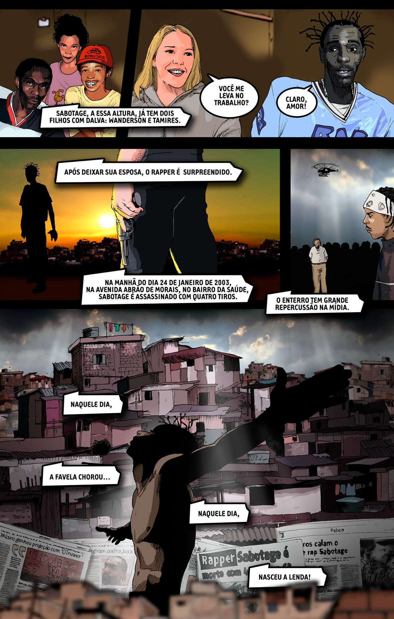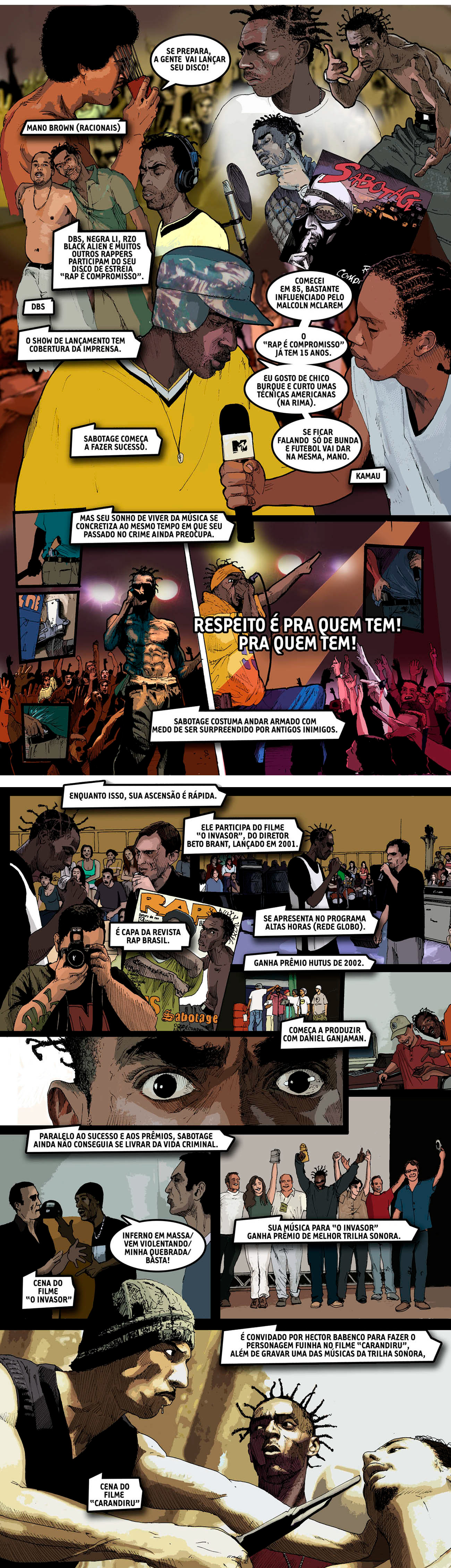 A história em quadrinhos do rapper Sabotage para o documentário “Sabotage: Maestro do Canão”.